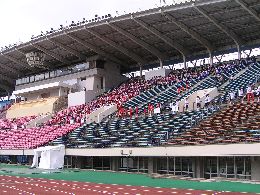 | 応援席の後ろにはばタンのマスコットが見える いろんな応援が見れるのでしょうね | 今からユニバー記念競技場でリハーサル 緊張してるかな!皆さんリラックスしてます | サブ競技場で本会場のリハーサルのリハーサル 最後の調整段階です。 |
