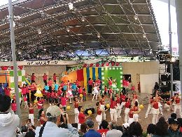 | 菓子博のふれあいステージでスイーツダンス 2008.4.18 | 勇ましいですね。笑顔が最高です。 菓子博開会式、アトラクションに出演。 | たくさんの参加者で練習です。 |